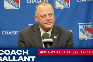 L’entraîneur-chef des Rangers de New York, Gerard Gallant, répond aux questions des médias après le match du 15 janvier contre…