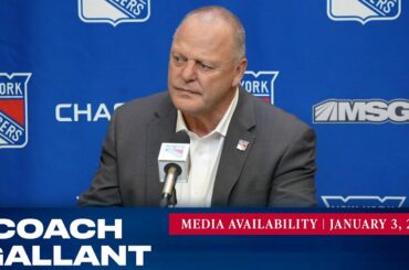 L’entraîneur des Rangers de New York, Gerard Gallant, répond aux questions des médias après le match du 3 janvier contre…