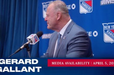 L’entraîneur-chef des Rangers de New York, Gerard Gallant, répond aux questions des médias avant le match du 5 avril contre…