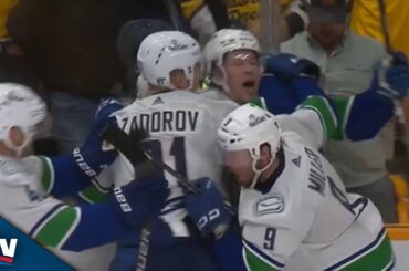 Brock Boeser marque avec le gardien retiré pour ramener les Canucks de Vancouver à un but. Avec le gardien retiré,…