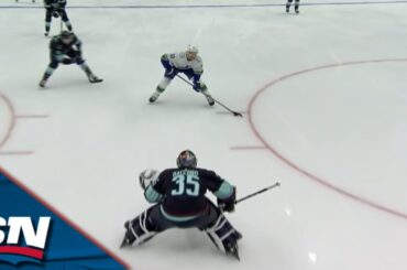 Nazem Kadri de Calgary bat Alexander Georgiev grâce à une excellente passe de Blake Coleman et porte le score à…