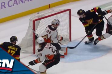 L’attaquant des Canucks de Vancouver, Brock Boeser, inscrit son 16e but de la saison pour prendre une avance de 1-0…