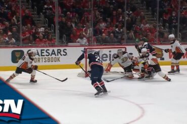 Regardez le défenseur des Capitals de Washington Ethan Bear marquer son premier de la saison sur un rebond contre les…