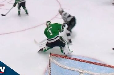 Regardez l’attaquant des Kings de Los Angeles Andrei Kuzmenko se jeter sur le gardien de but des Stars de Dallas…