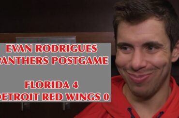 L’attaquant des Panthers de la Floride, Evan Rodrigues, s’exprime après que son équipe a battu les Blue Jackets de Columbus…