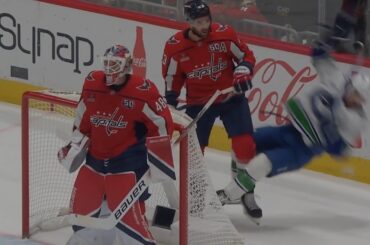 In @Capitals de Washington Tom Wilson perce Conor Garland à la fin de la réglementation janvier 9, 2025 Saison 2024-2025 Canucks de Vancouver contre Capitals de Washington 1/8/2025