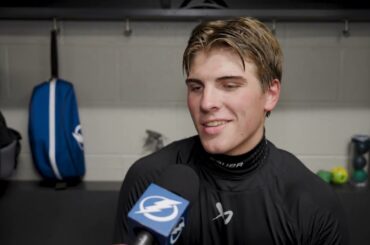 Caleb Heil s’entretient avec les médias après la victoire de la tir de la pré-saison de Lightning contre Nashville. Rejoignez…