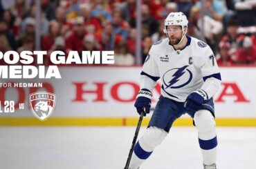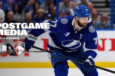 Le capitaine Victor Hedman a parlé aux médias après la défaite des Bolts 4-2 lors du match 4 contre les…