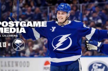 Le défenseur Emil Lilleberg a parlé aux médias après la victoire des Bolts 7-4 contre les Sabres de Buffalo à…