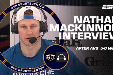 Nathan MacKinnon rejoint SportsCenter avec Scott Van Pelt après la victoire 5-0 du Colorado contre les Blackhawks de Chicago alors…