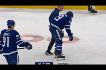 L’attaquant des Maple Leafs Mitch Marner marque en supériorité numérique pour donner à Toronto la victoire de 5-4 en prolongation…