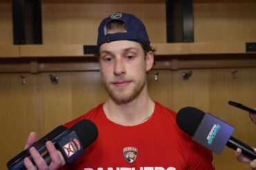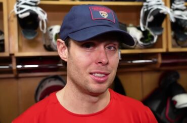 Carter Verhaeghe, l’attaquant des Florida Panthers, rencontre les médias après que son équipe a perdu 5-2 contre l’hôte des Penguins…