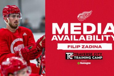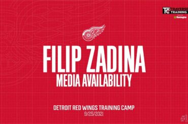 Filip Zadina rencontre les médias le jour 3 du camp d’entraînement des Red Wings 2021-22 présenté par Huntington Bank.