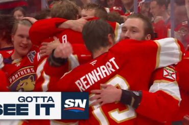 L’attaquant des Panthers Sam Reinhart scores dans les 5 premières minutes du match 6, mettant la Floride 1-0 sur les…