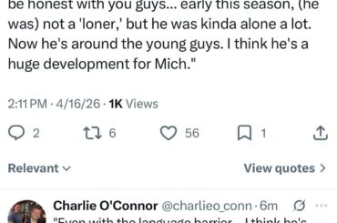 Excellente lecture d’Adam Kimelman avec Michkov avant les séries éliminatoires. Est-ce la première interview en anglais de Matvei ? Certainement…