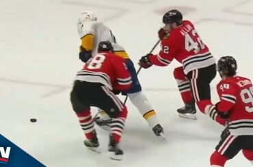 Regardez Filip Forsberg récupérer la rondelle dans la zone, se frayer un chemin jusqu’au milieu de la défense des Blackhawks…