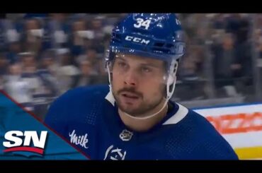 Regardez l’attaquant des Maple Leafs de Toronto Auston Matthews derrière Victor Hedman pour enterrer un rebond et amener son équipe…