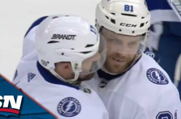 Regardez Brayden Point et Nikita Kucherov se combiner pour battre le buzzer et donner au Lightning de Tampa Bay une…