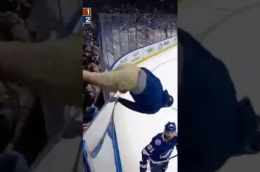 Une invasion inattendue de glace arrête le jeu 😱🏒 Lors d’un match Lightning vs Flyers, un fan saute la vitre…