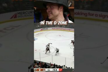 Max Jones donne une interview portant un grand chapeau. Parle de son but dans le match Anaheim Ducks contre Chicago…