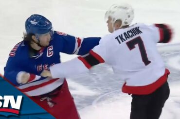 Regardez deux capitaines essayer de mettre leurs équipes respectives en marche, alors que Brady Tkachuk des Sénateurs d’Ottawa et Jacob…