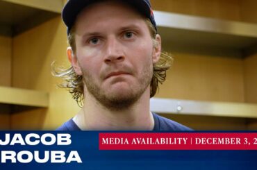 Le capitaine des Rangers de New York, Jacob Trouba, répond aux questions des médias après le match du 3 décembre…