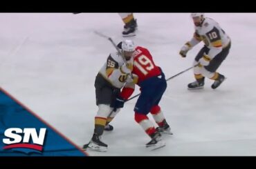 Regardez l’attaquant des Golden Knights de Vegas Ivan Barbashev niveler le défenseur des Panthers de la Floride Radko Gudas avec…