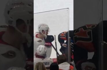 Le capitaine des Sénateurs d’Ottawa, Brady Tkachuk, casse son bâton et l’échange contre un nouveau sur le banc lors d’une…