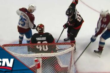 Regardez l’attaquant de l’Avalanche du Colorado Lars Eller marquer bizarrement, ramenant la rondelle à la maison sur le gardien de…