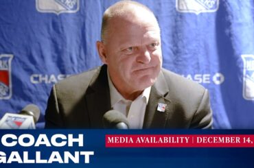 L’entraîneur des Rangers de New York, Gerard Gallant, répond aux questions des médias après le match du 14 décembre contre…