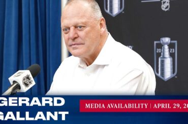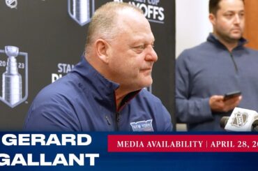 L’entraîneur-chef des Rangers de New York, Gerard Gallant, répond aux questions des médias après l’entraînement du 23 avril. » Abonnez-vous…