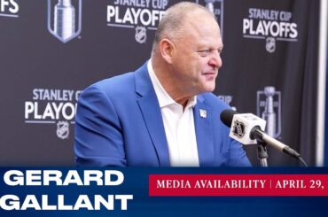 L’entraîneur-chef des Rangers de New York, Gerard Gallant, répond aux questions des médias après l’entraînement du 26 avril. » Abonnez-vous…