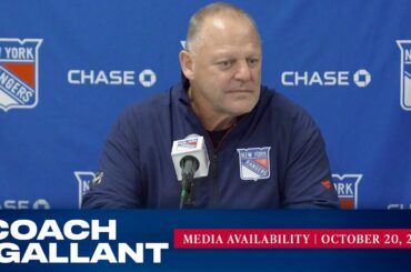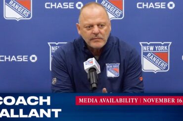 L’entraîneur des Rangers de New York, Gerard Gallant, répond aux questions des médias avant le match du 16 novembre contre…