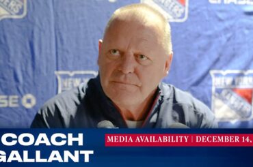 L’entraîneur des Rangers de New York, Gerard Gallant, répond aux questions des médias avant le match du 14 décembre contre…
