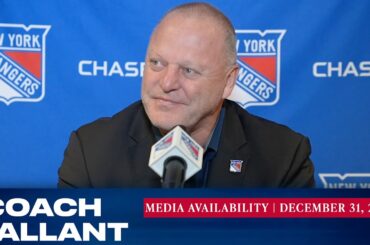L’entraîneur des Rangers de New York, Gerard Gallant, répond aux questions des médias avant le 31 décembre contre le Tampa…