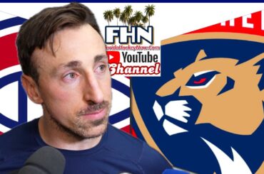 Le défenseur des Panthers de la Floride, Gus Forsling, parle aux médias de Montréal après que les Canadiens ont obtenu…
