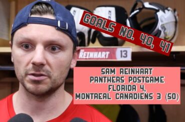 L’attaquant des Panthers de la Floride, Sam Reinhart, prend la parole après que son équipe a battu les Canadiens de…