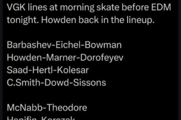 Brett Howden, Noah Hanifin et l’entraîneur-chef Bruce Cassidy s’adressent aux médias après le match de dimanche soir contre les Oilers…