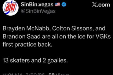 Rejoint les légendes du VGK Alex Pietrangelo, Vadim Shipachyov, MAF, Phil Kessel, Quick et Stastny en tant que seuls joueurs…