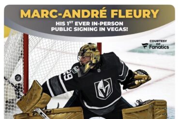 Voici le lien vers l’article : https://inscriptagraphs.com/pages/marc-andre-fleury-public-autograph-signing-in-las-vegas-february-2026 "Articles de base (photos, affiches de match, rondelles, cartes à collectionner, billets, objets…