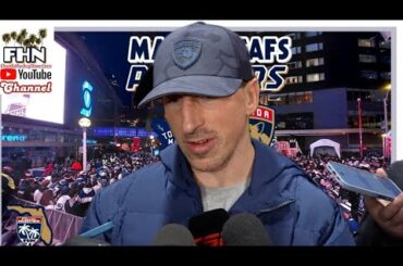 L’attaquant des Panthers de la Floride, Brad Marchand, rencontre les médias avant que son équipe affronte les Maple Leafs de…