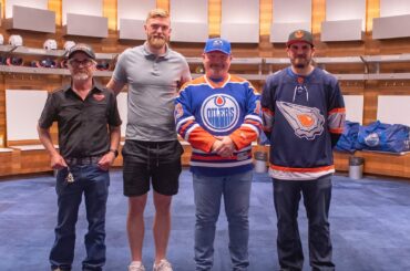 Les trois nouveaux millionnaires des Oilers Mega 50/50 se sont arrêtés à Rogers Place pour récupérer leurs chèques et ont…