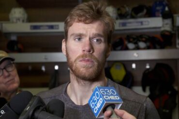 Connor s’adresse aux médias avant le sixième match contre les Golden Knights à Rogers Place dimanche.
