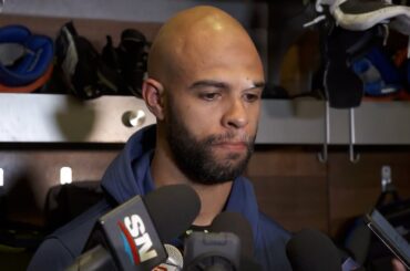 Darnell s’entretient avec les médias après la défaite des Oilers face aux Golden Knights de Vegas dimanche à Rogers Place.