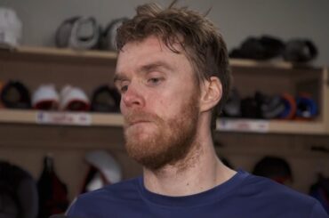 Connor s’entretient avec les médias après une défaite 4-3 lors du cinquième match à Vegas vendredi soir.