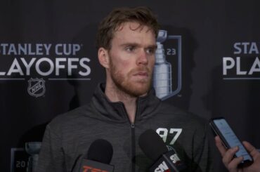 Connor parle après l’entraînement alors que l’équipe commence les préparatifs pour la ronde 2 contre les Golden Knights.