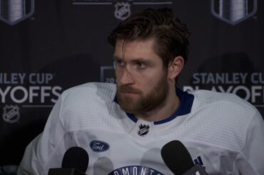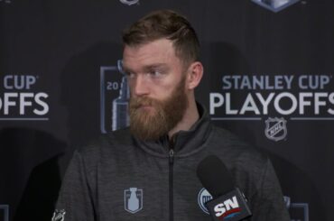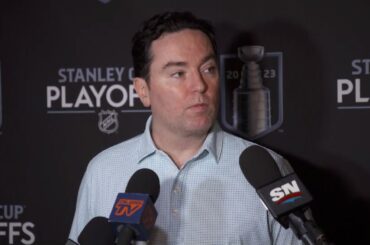 Jay s’adresse aux médias avant que l’équipe ne s’envole pour Vegas pour le match 1 contre les Golden Knights.