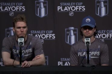 Connor et Kailer parlent aux médias après la victoire de la série Oilers contre les Kings de Los Angeles samedi…