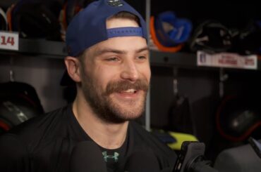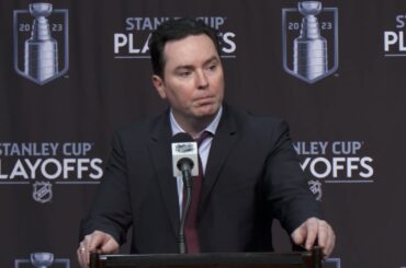 Stuart s’adresse aux médias après avoir soutenu les Oilers à une victoire de 5-4 dans le match 6 alors qu’ils…