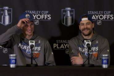 Nick et Stuart s’adressent aux médias après la victoire des Oilers Game 5 devant le public local à Rogers Place…